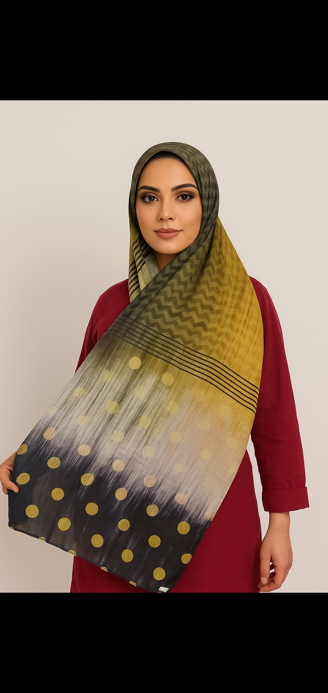 شال نخی طرحدارتوپ توپی زرد مشکی