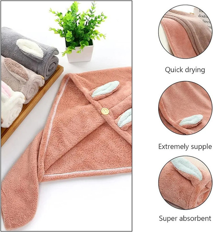 حوله خشک کن مو یکی از محصولات خلاقانه و کاربردی حمام برای خانم ها که معضل خشک کردن موهای بلند را دارند. جنس این حوله خشک کننده مو دکمه دار از میکروفایبر با جذب بالای آب می باشد و به طول 59.5 سانتی متر است که با پیچیدن مو در آن سریع تر و راحت تر موها خشک می گردند🍃